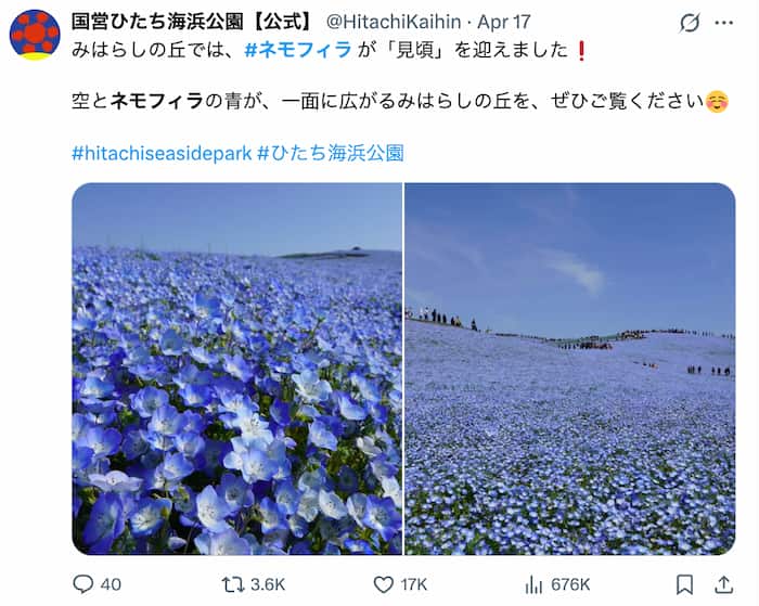 ただ、ネモフィラのピークとは少し時期がずれる可能性があります。