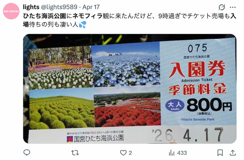 ネモフィラ時期は、通常料金とは別に「季節料金」が上乗せされます。