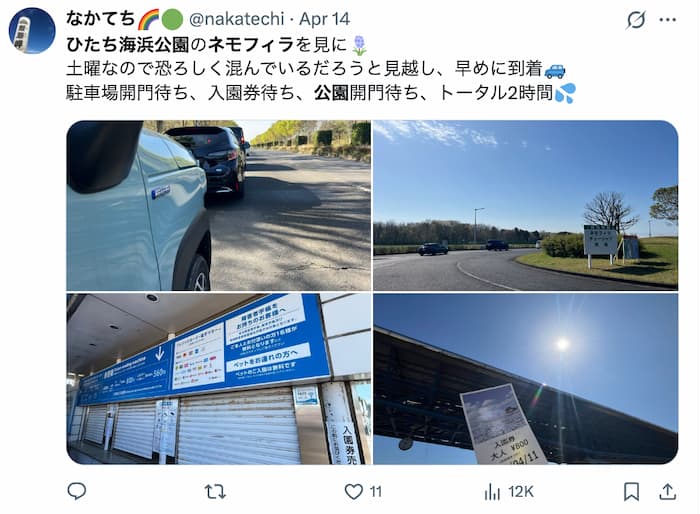 車の自由さは魅力ですが、ネモフィラのピーク時だけは話が変わります。