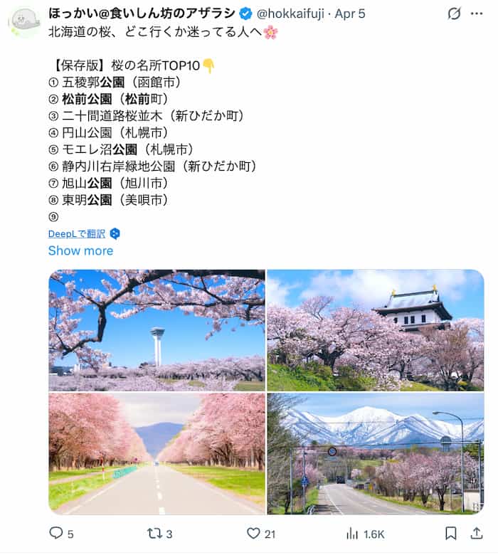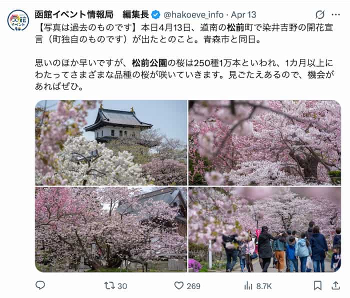 私はこの情報を見るたびに、松前は“生きた桜図鑑”という表現がぴったりだなと思います。
